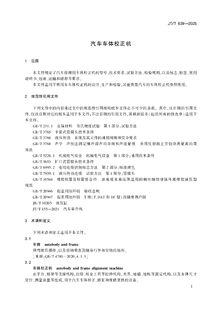 JT/T 639-2025 汽车车体校正机燃料消耗量限值及测量方法