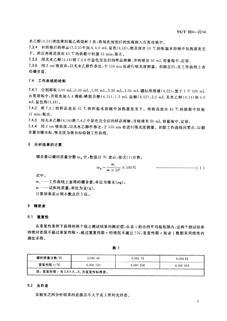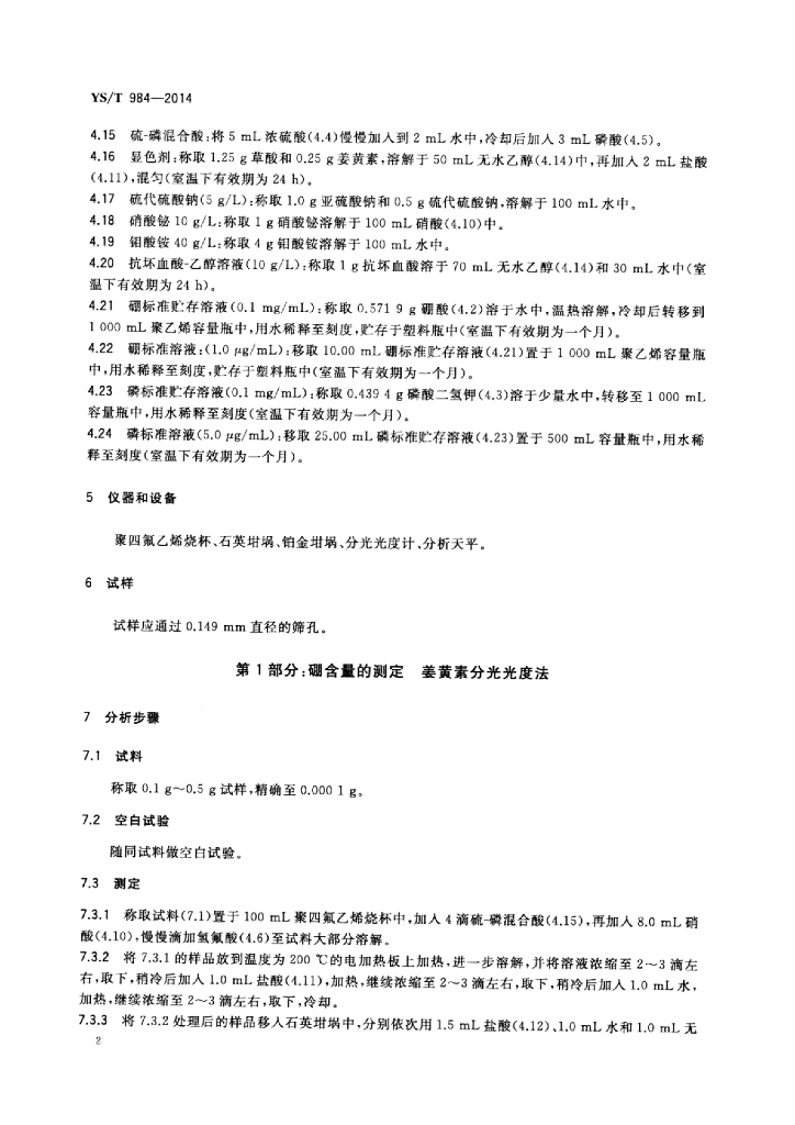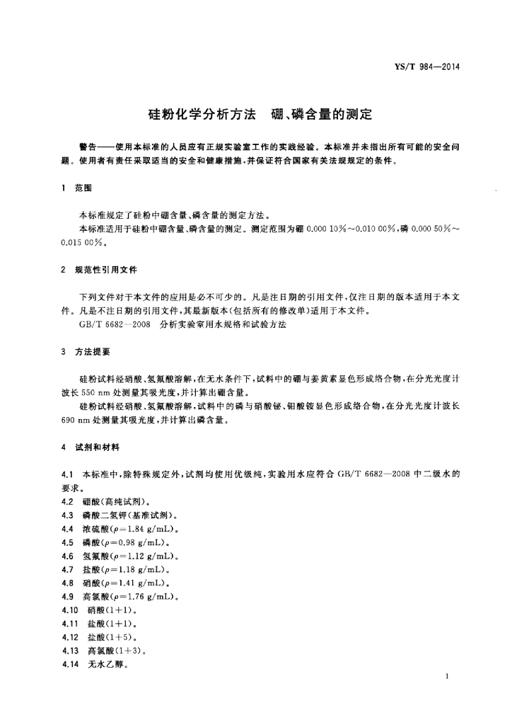 YS/T 984-2014 硅粉化学分析方法硼、磷含量的测定