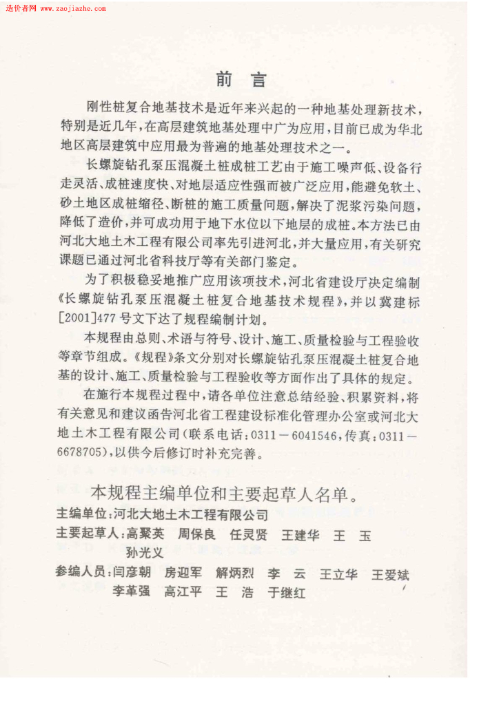 DB13(J) 31-2001 长螺旋钻孔泵压混凝土桩复合地基技术规程