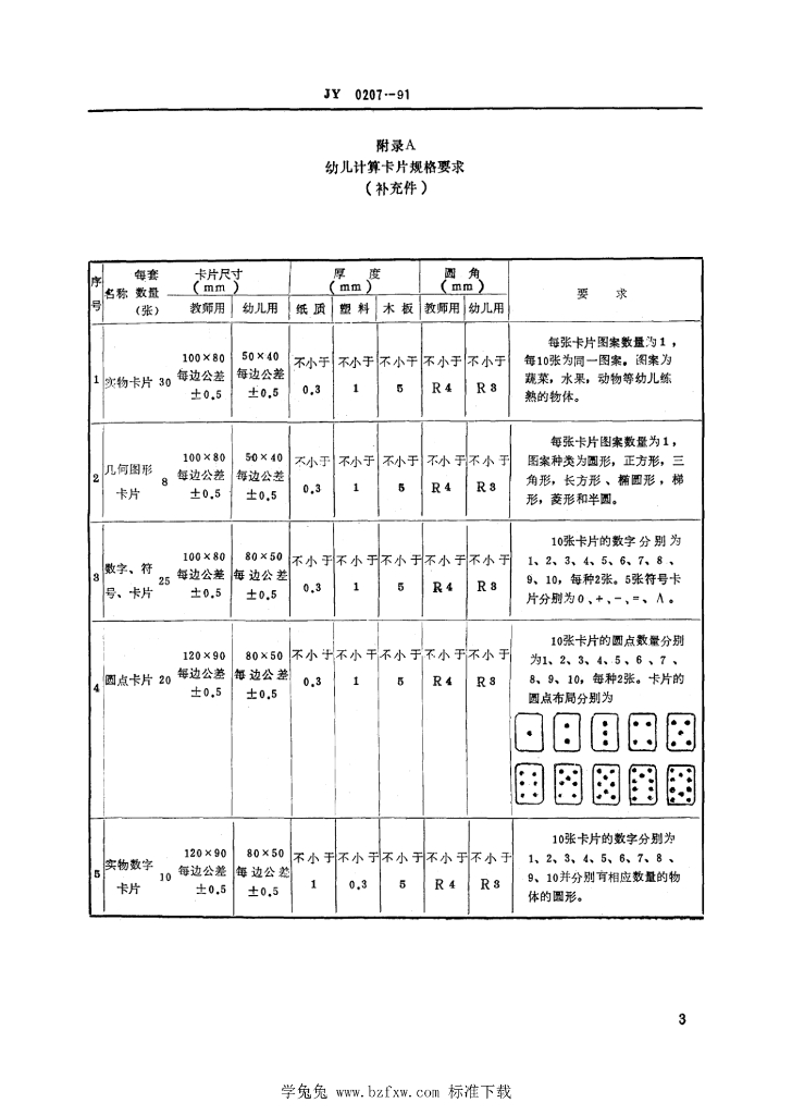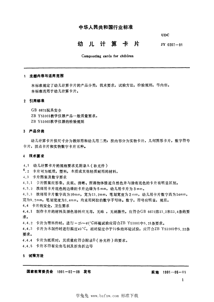 JY 0207-1991 幼儿计算卡片