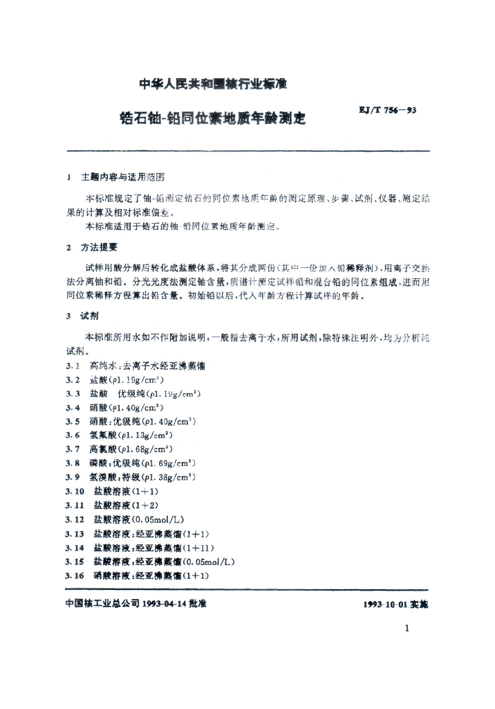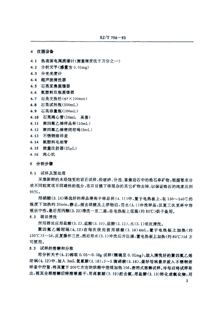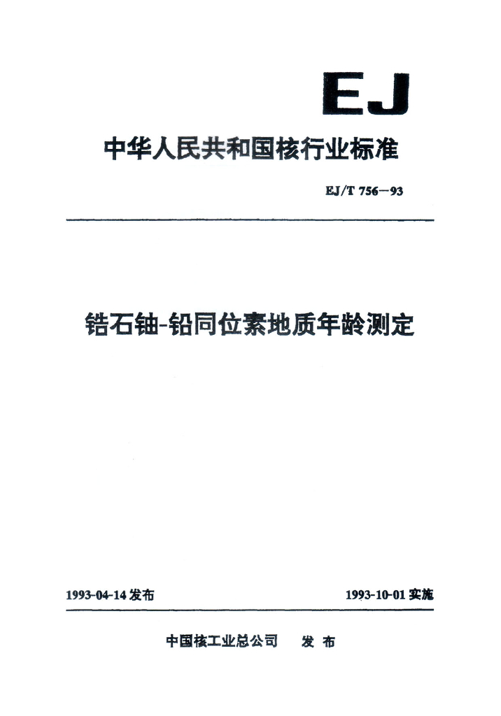 EJ/T 756-1993 锆石铀-铅同位素地质年龄测定