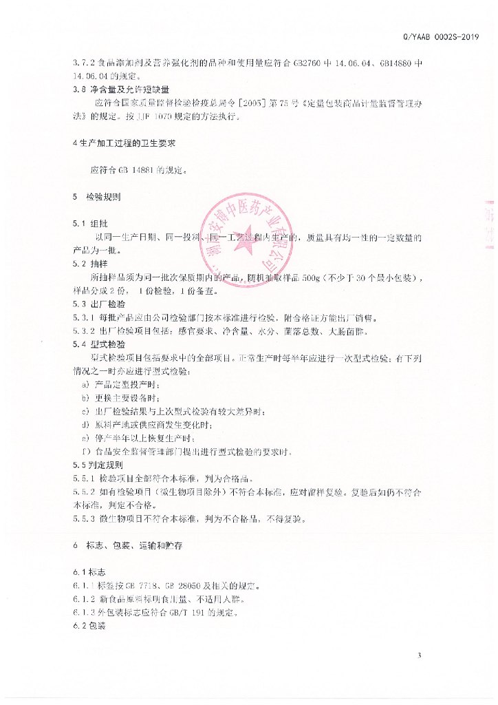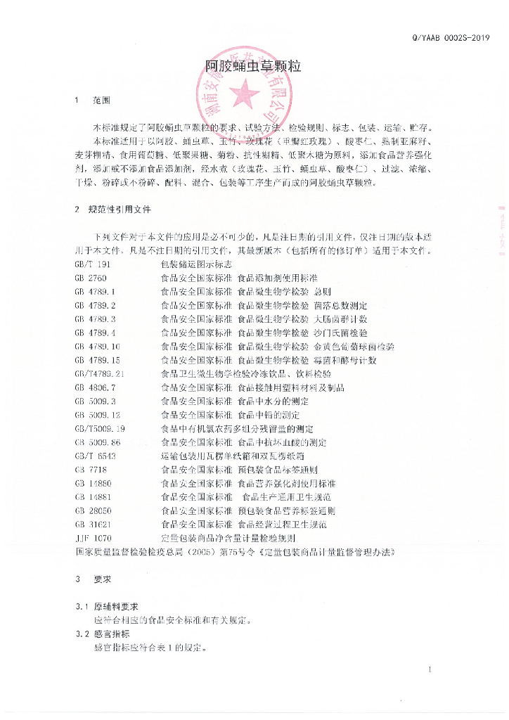 Q/YAAB 0002S-2019 阿胶蛹虫草颗粒