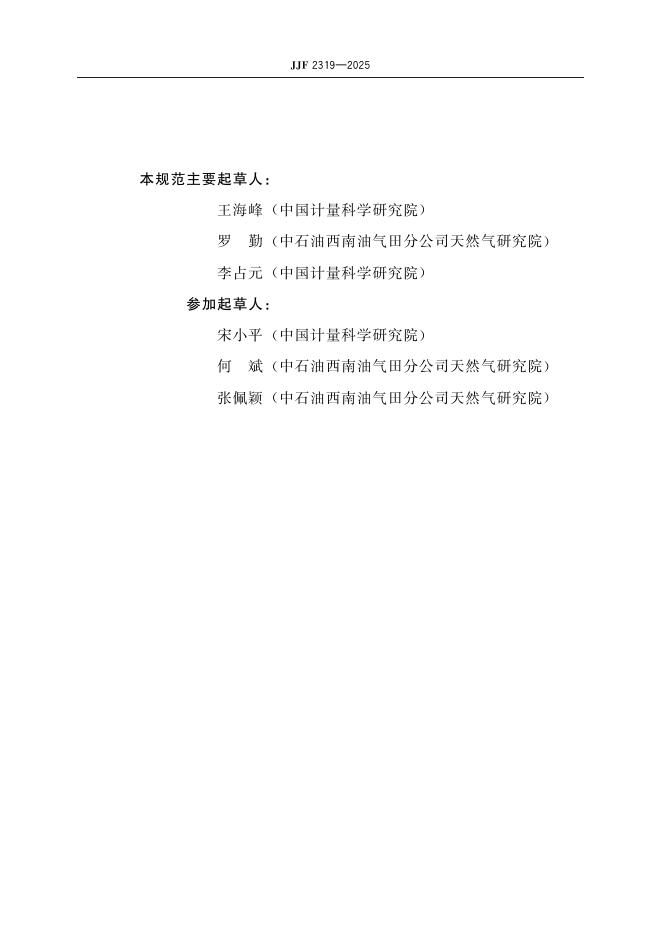 王海峰(中国计量科学研究院);罗勤(中石油西南油气田分公司天然气研究院);李占元(中国计量科学研究院);宋小平(中国计量科学研究院);何斌(中石油西南油气田分公司天然气研究院);张佩颖(中石油西南油气田分公司天然气研究院)