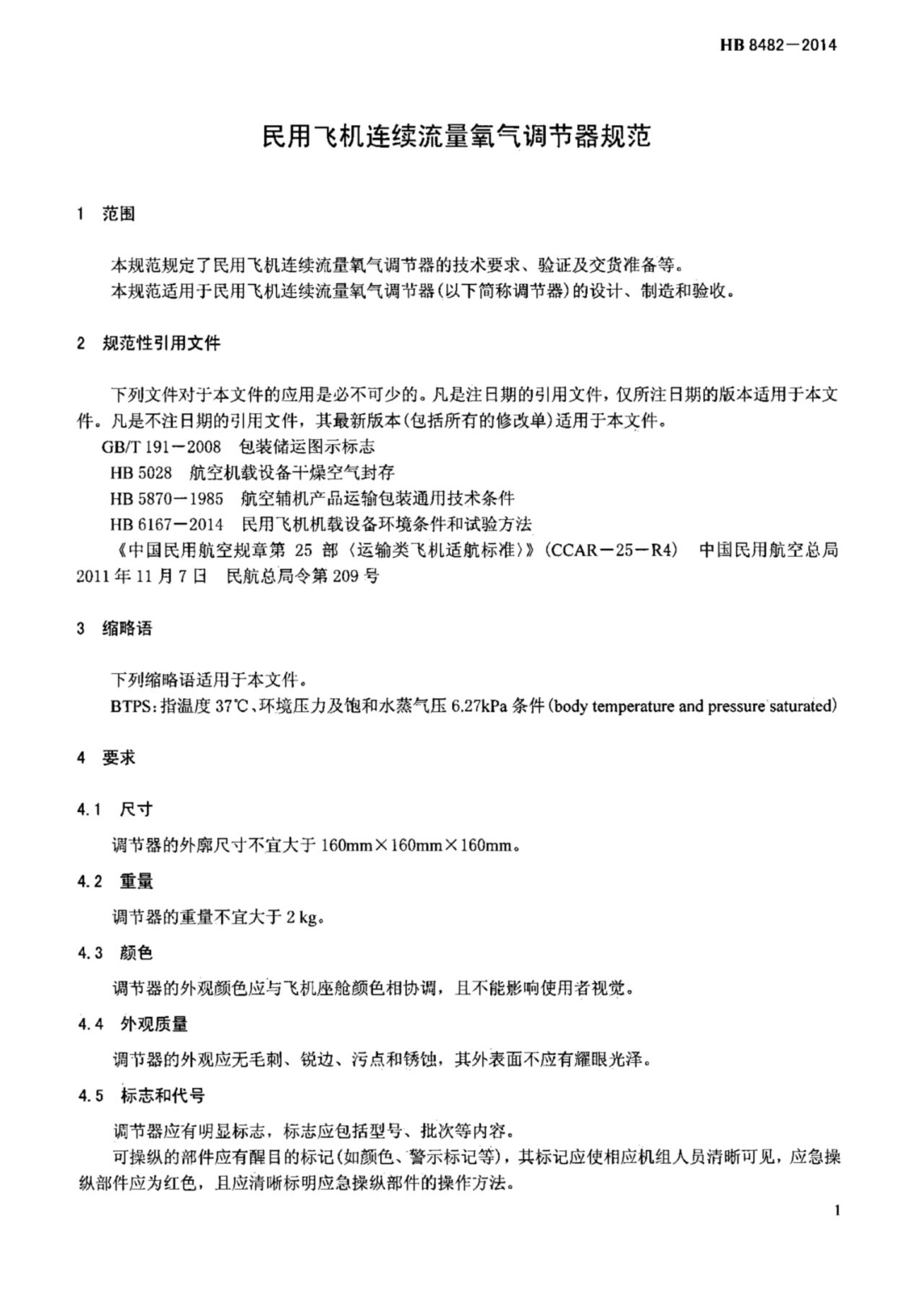 HB 8482-2014 民用飞机连续流量氧气调节器规范