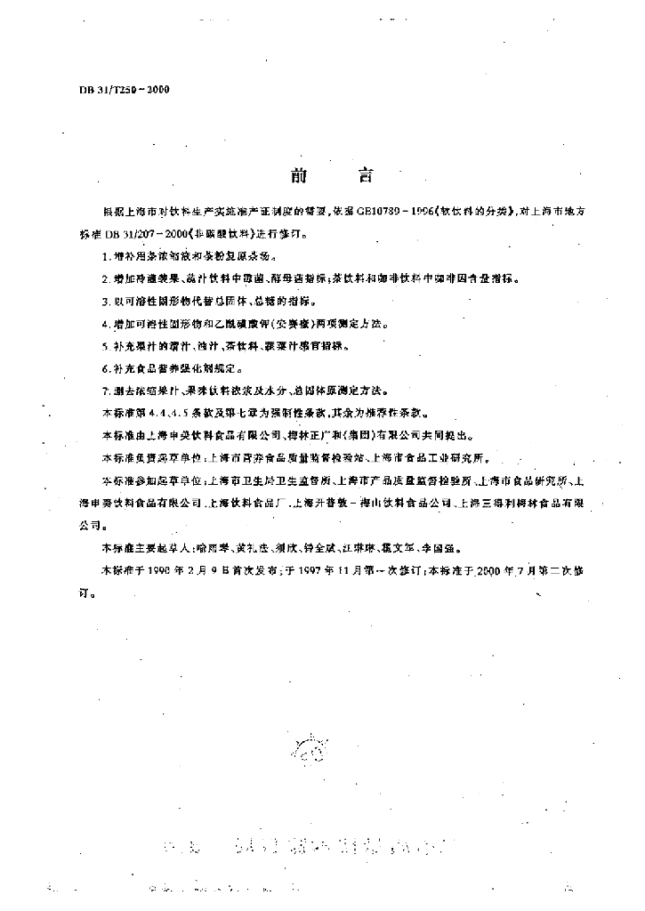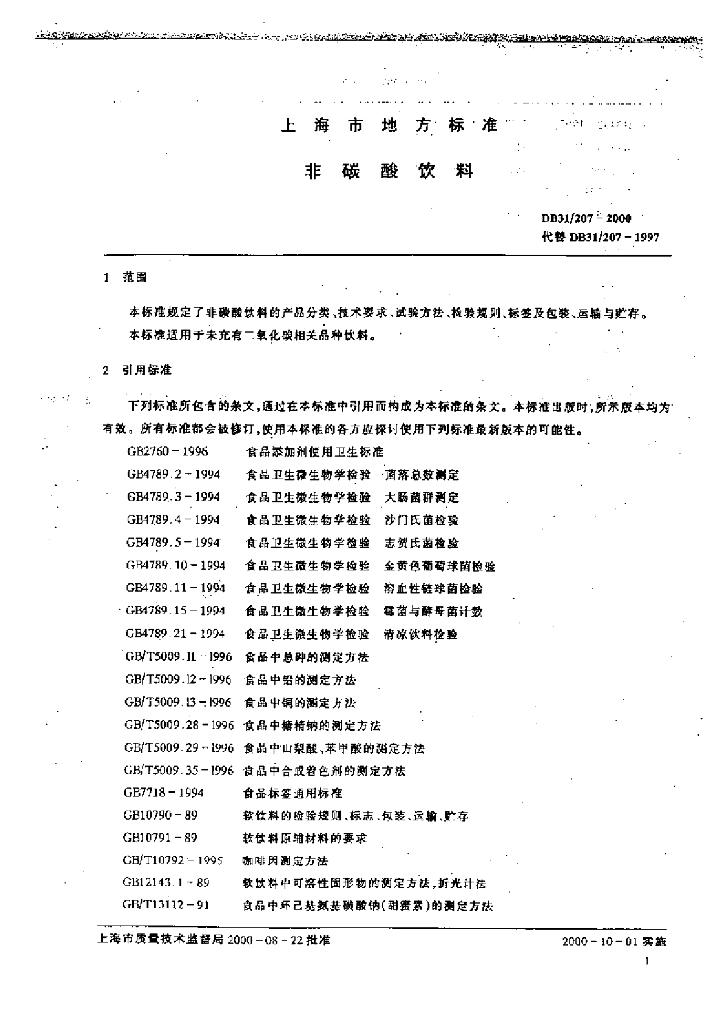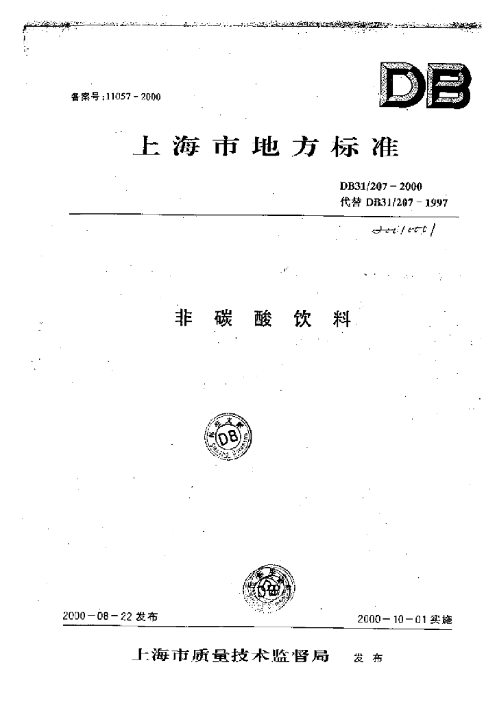 DB31/ 207-2000 非碳酸饮料