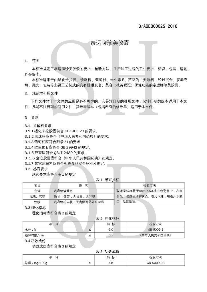 Q/ABEB 0002S-2018 泰运牌珍美胶囊