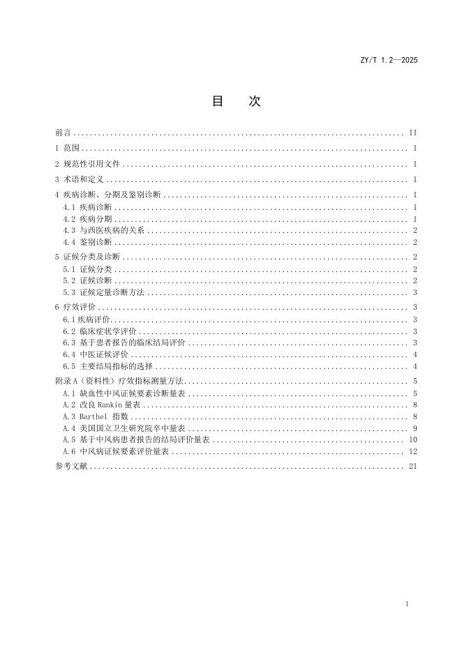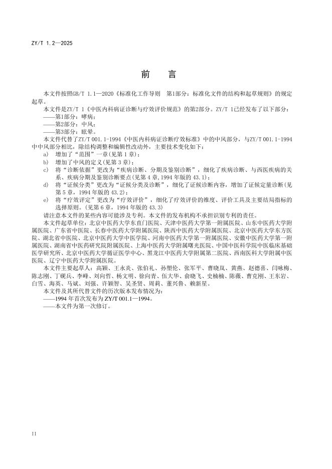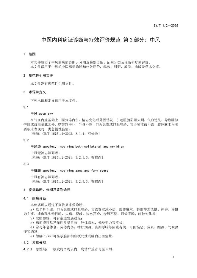 ZY/T 1.2-2025 中医内科病证诊断与疗效评价规范 第2部分:中风