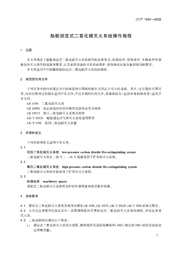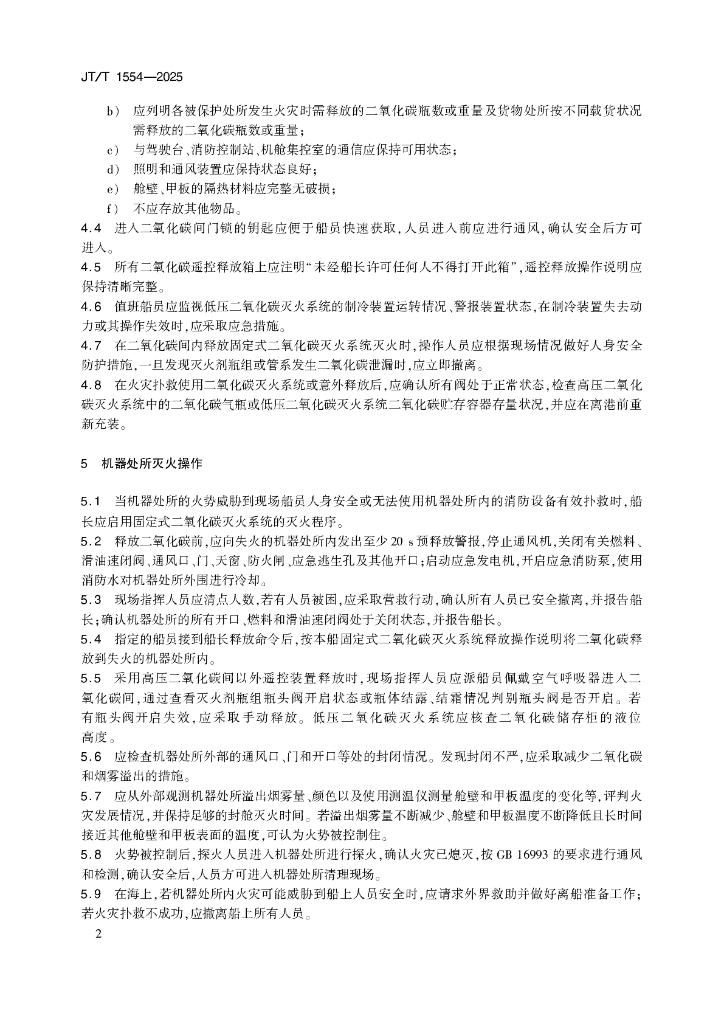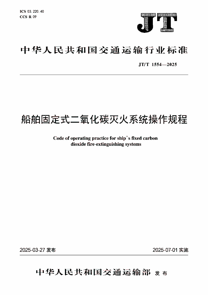 JT/T 1554-2025 船舶固定式二氧化碳灭火系统操作规程
