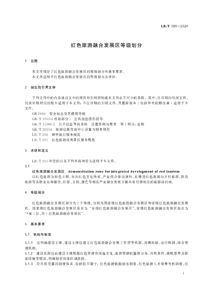 LB/T 089-2024 红色旅游融合发展区等级划分