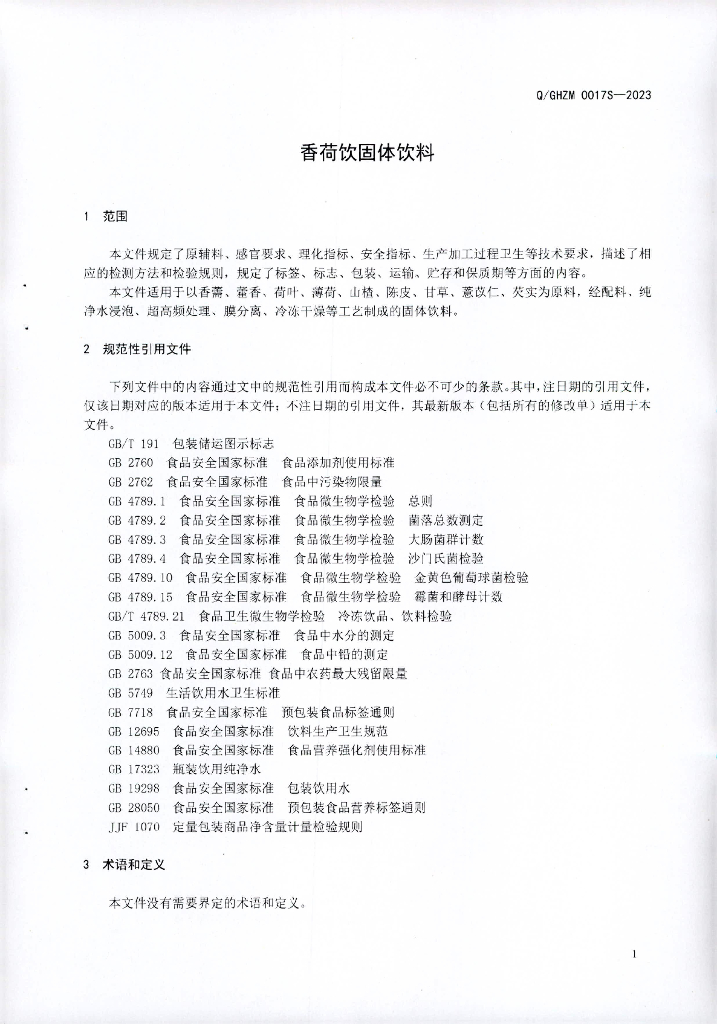 Q/GHZM 0017S-2023 香荷饮固体饮料