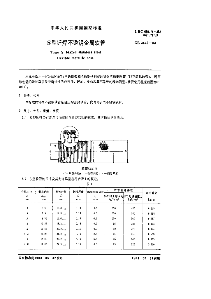 GB/T 3642-1983 S型钎焊不锈钢金属软管