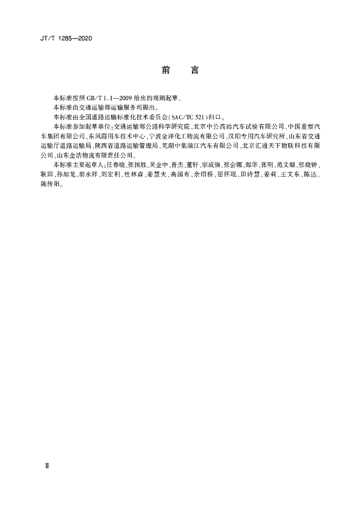 - 提出单位:全国道路运输标准化技术委员会