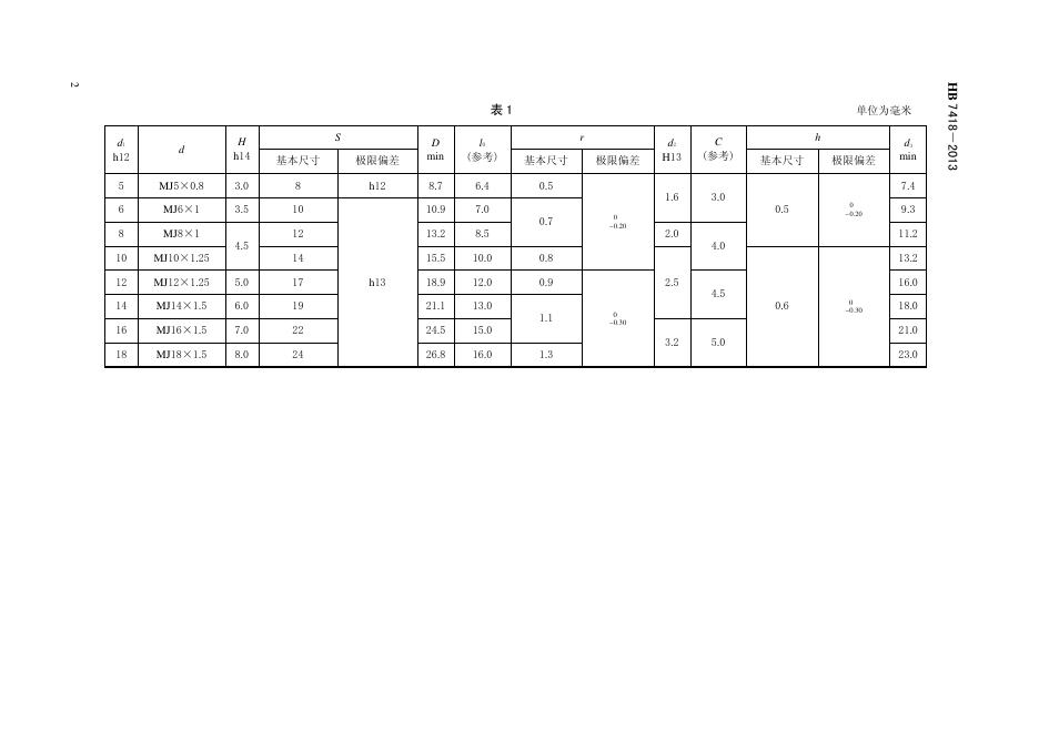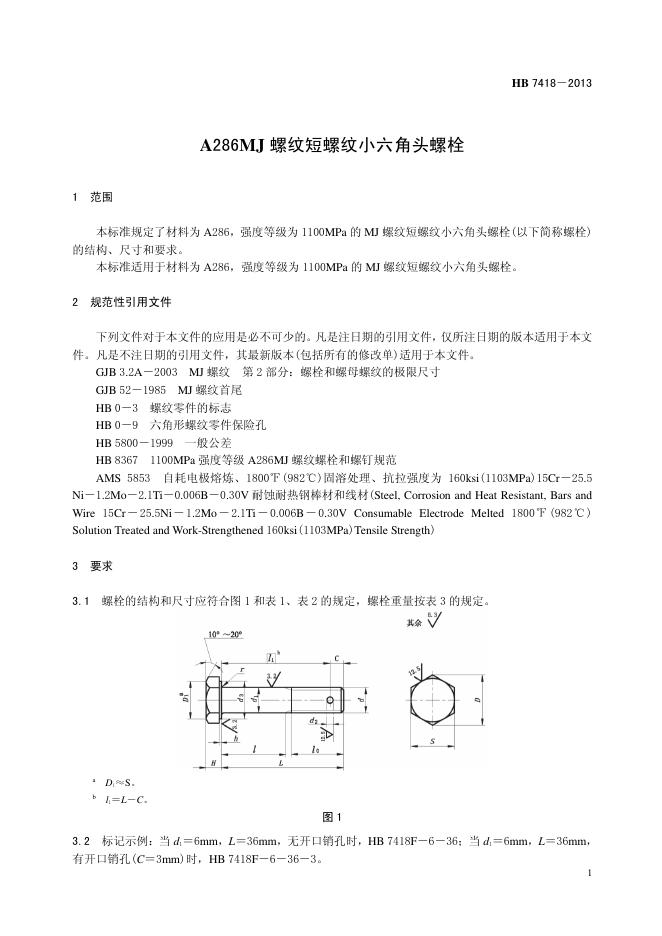 HB 7418-2013(2017) A286MJ螺纹短螺纹小六角头螺栓