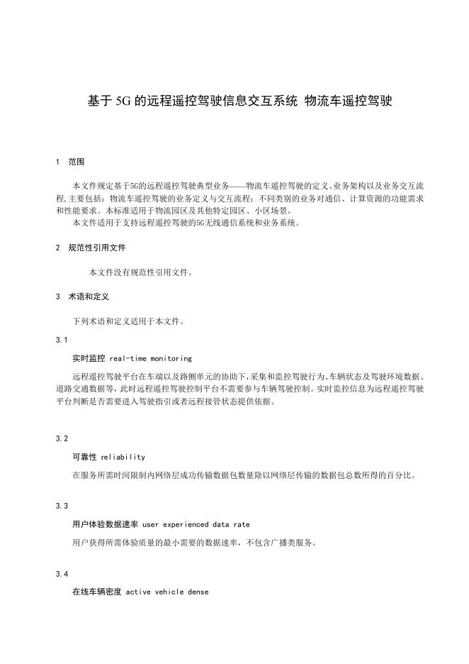 YD/T 4782-2024 基于5G的远程遥控驾驶信息交互系统 物流车遥控驾驶技术要求