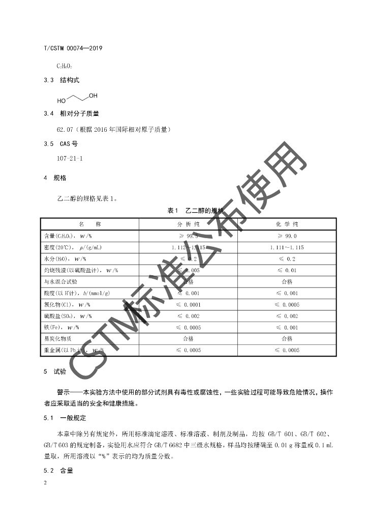 T/CSTM 00074-2019 化学试剂 乙二醇