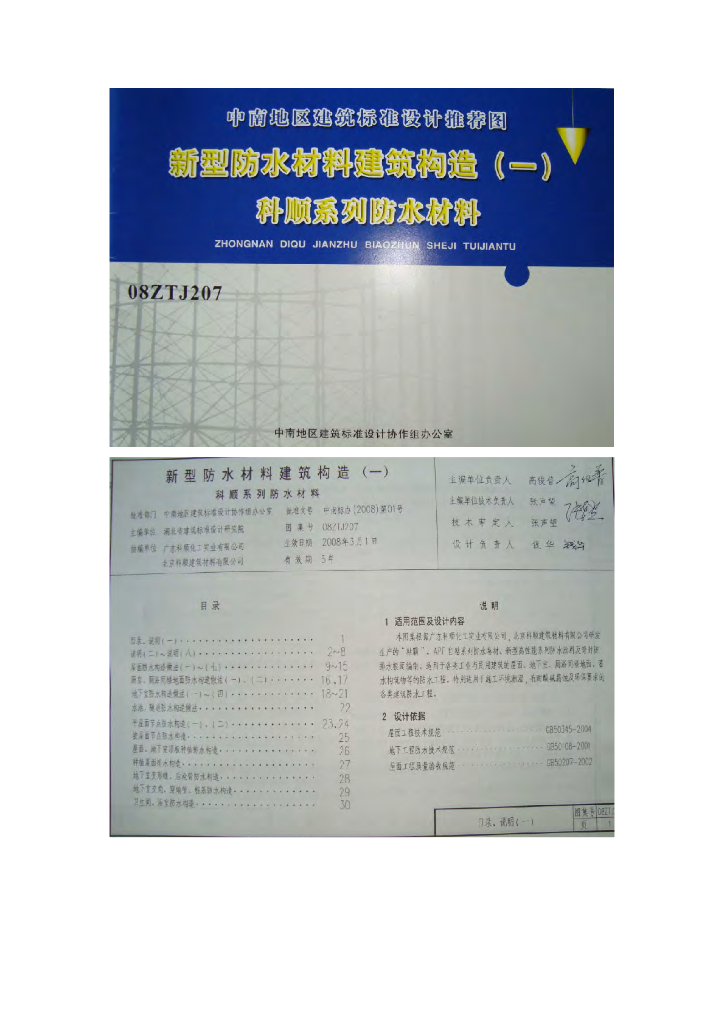 08ZTJ207 新型防水材料建筑构造(一)科顺系列防水材料图集(中南标)