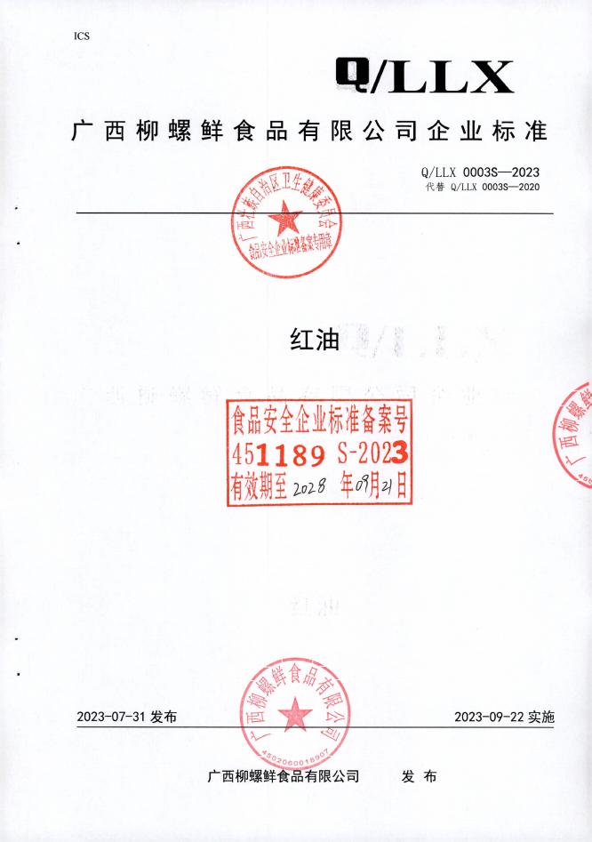 Q/LLX 0003S-2023 红油 广西柳螺鲜食品有限公司 (企业申请废止)
