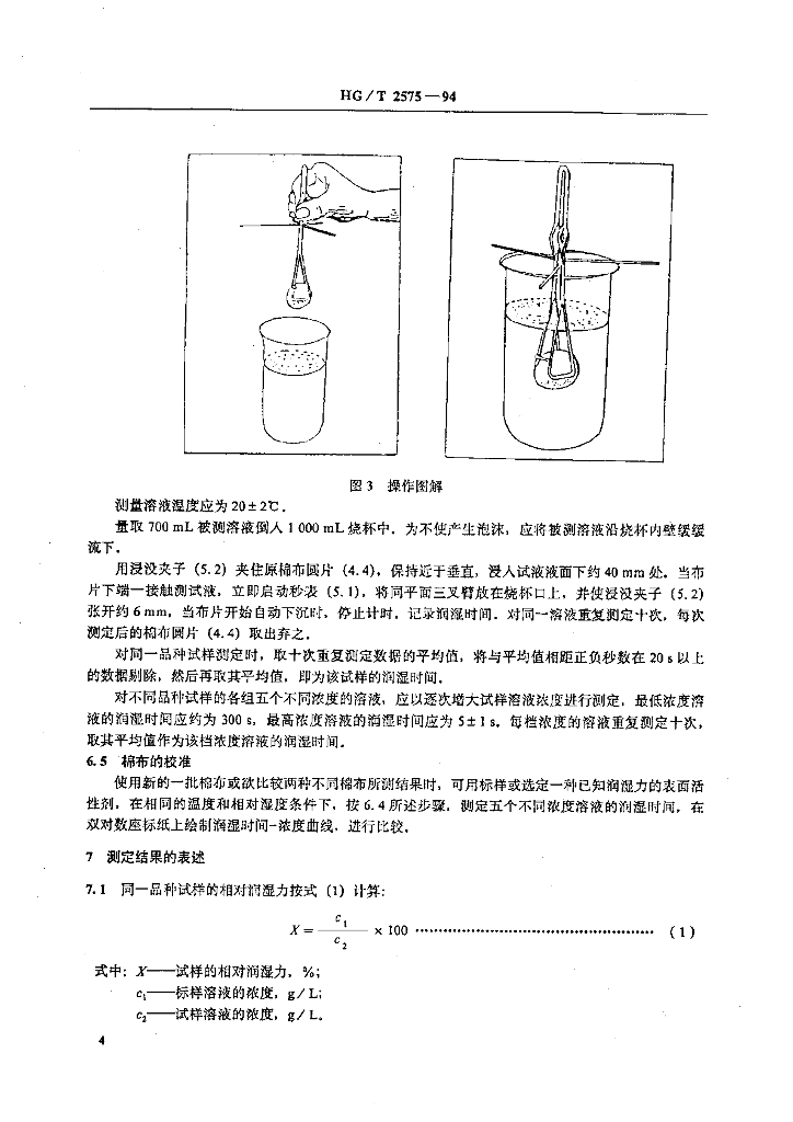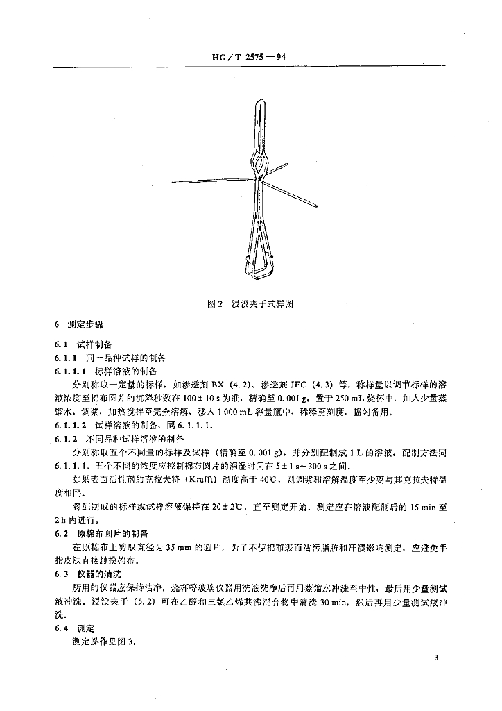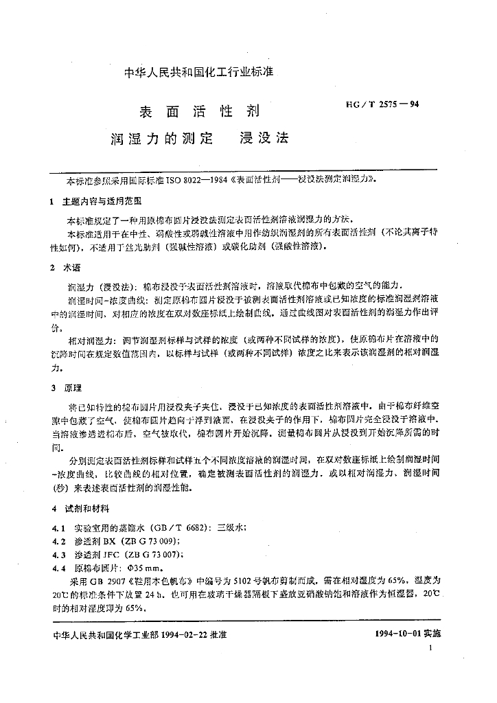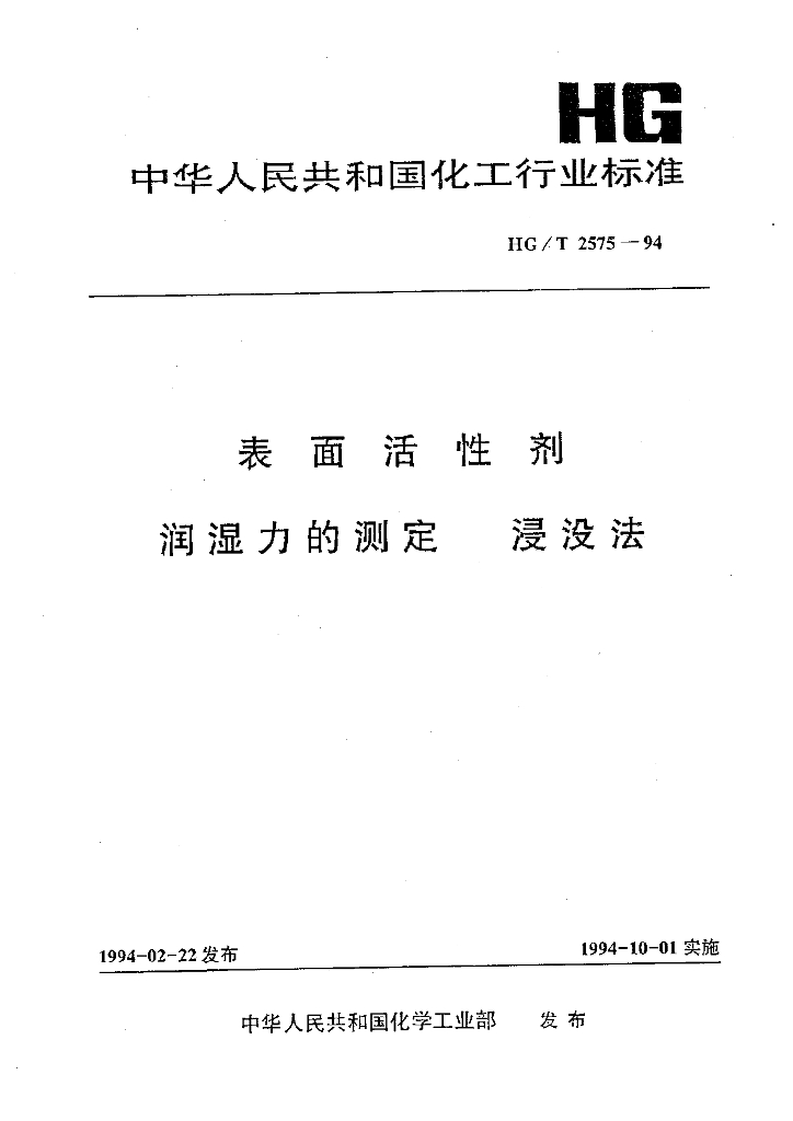 HG/T 2575-1994 表面活性剂 润湿力的测定 浸没法