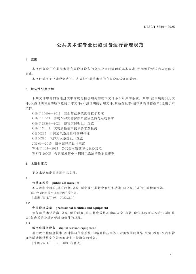 DB32/T 5280-2025 公共美术馆专业设施设备运行管理规范
