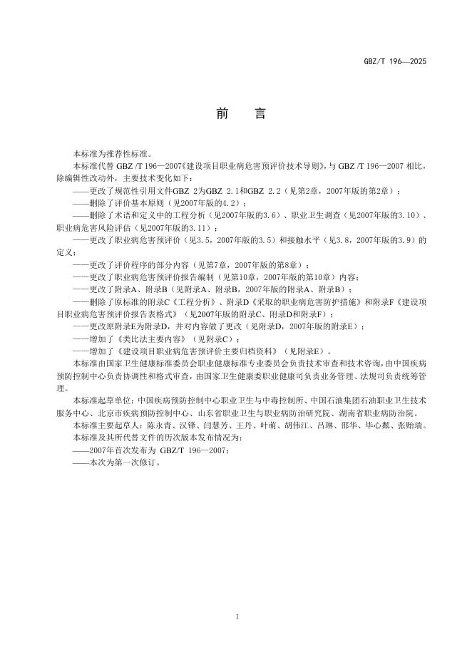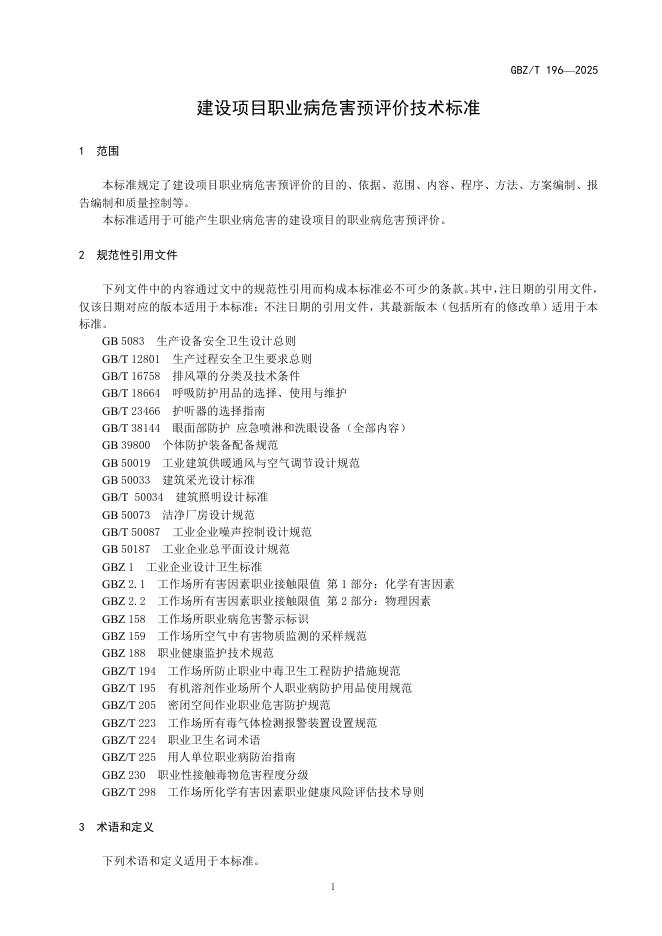GBZ/T 196-2025 建设项目职业病危害预评价技术标准