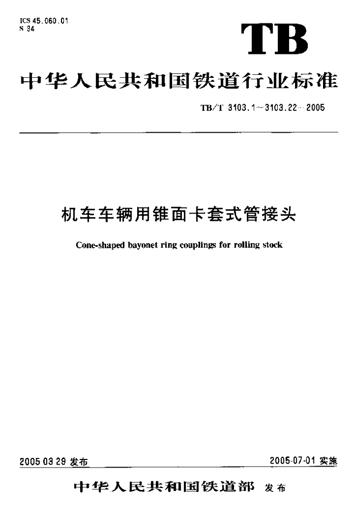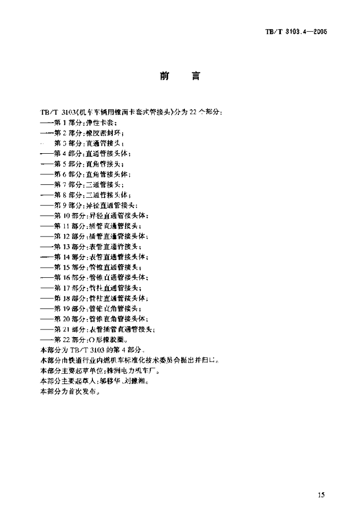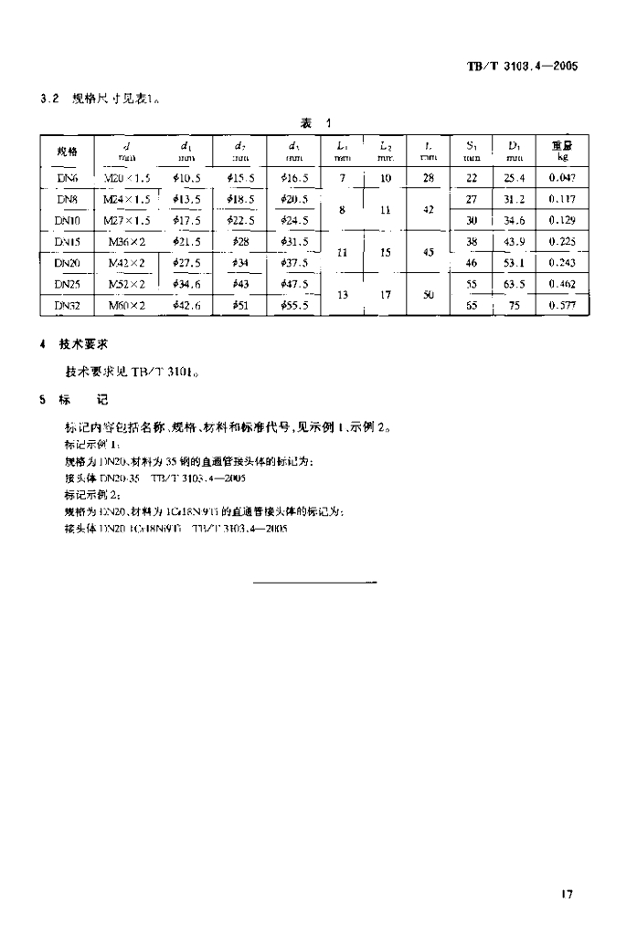 TB/T 3103.4-2005 机车车辆用锥面卡套式管接头 第4部分:直通管接头体