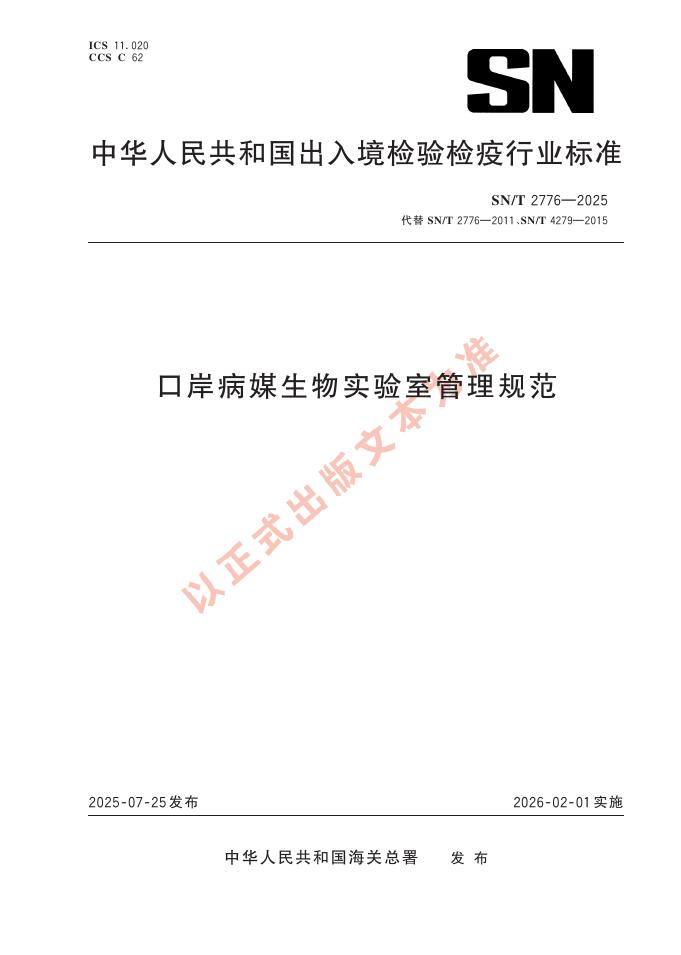 SN/T 2776-2025 口岸病媒生物实验室管理规范