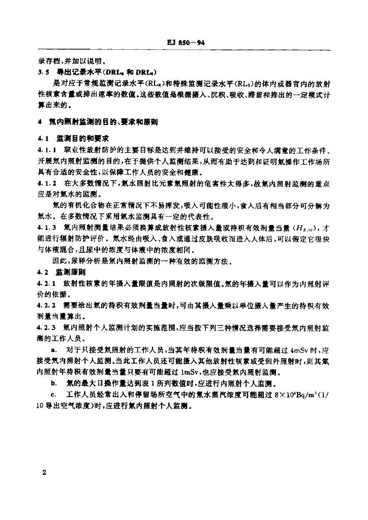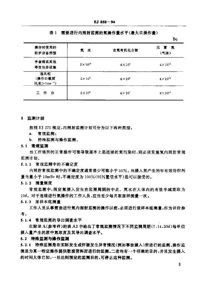 EJ 850-1994 氚内照射监测大纲的最低要求
