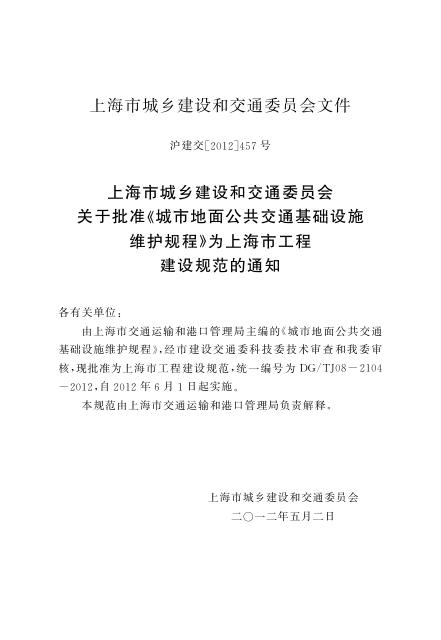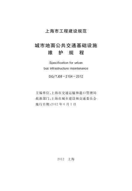 DG/TJ 08-2104-2012 城市地面公共交通基础设施维护规程