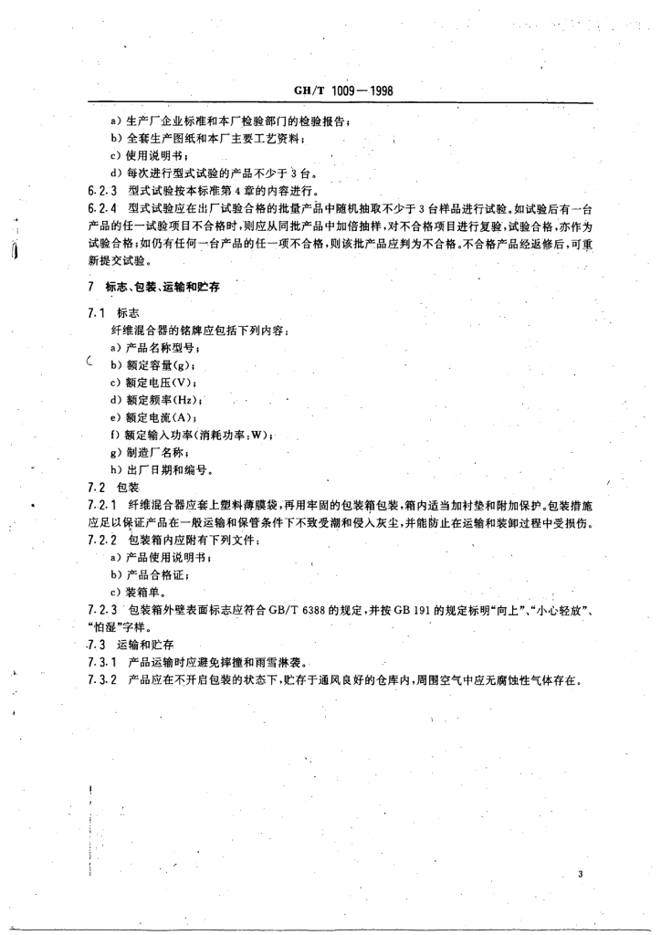 GH/T 1009-1998 实验室纤维混合器