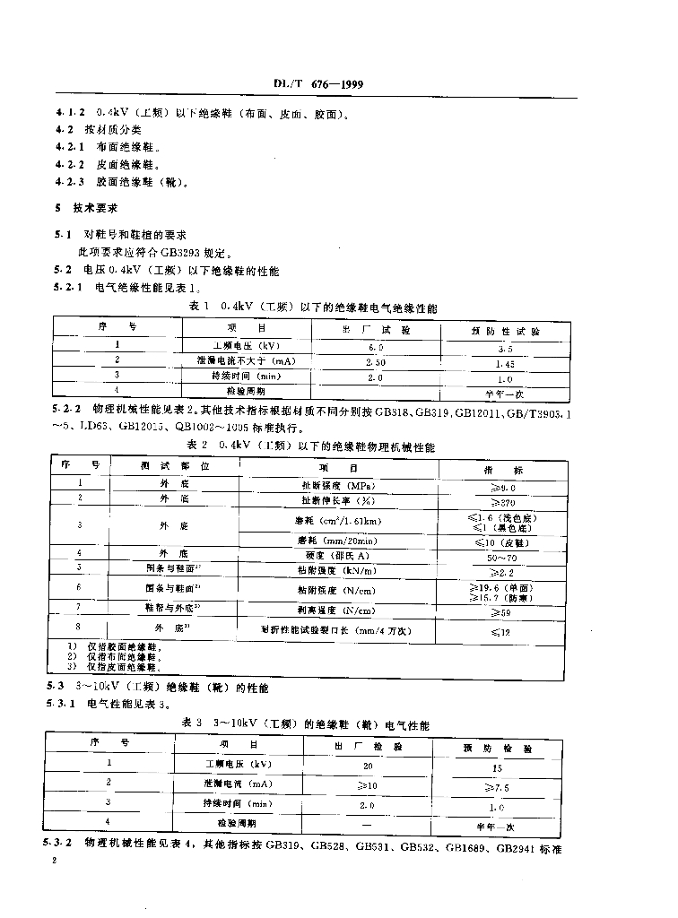 DL/T 676-1999 带电作业绝缘鞋(靴)通用技术条件