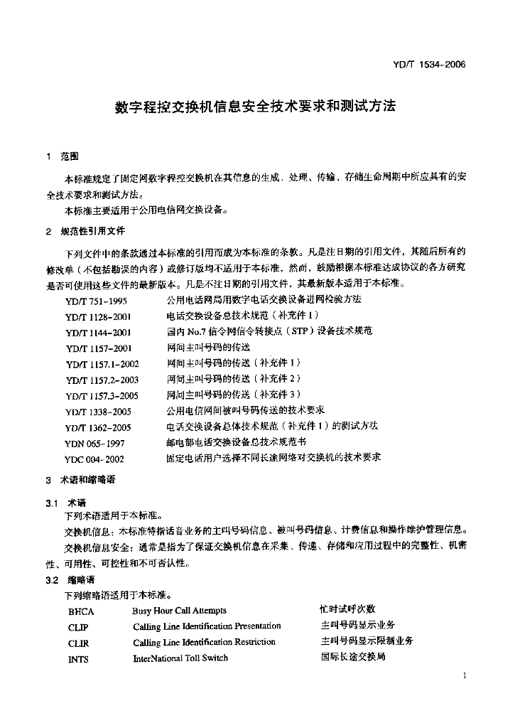 YD/T 1534-2006 数字程控交换机信息安全技术要求和测试方法