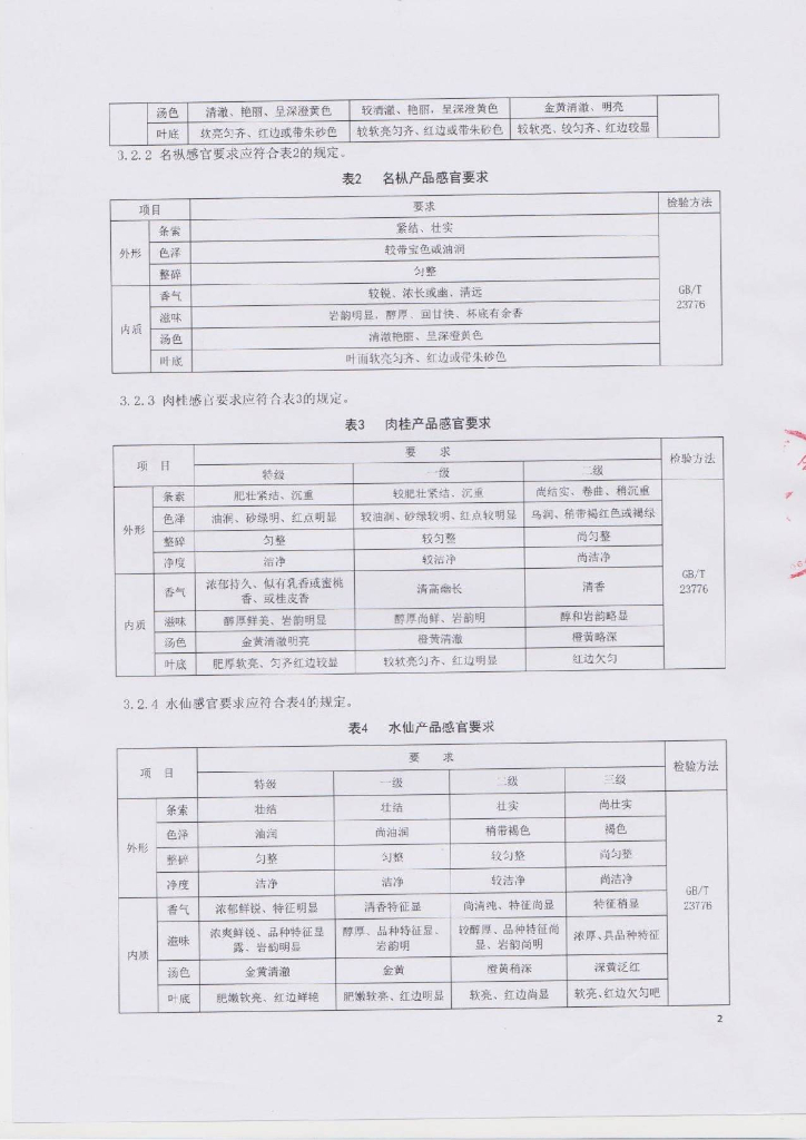 Q/DXFJC 0001-2015 芬吉茶业有限公司 岩茶