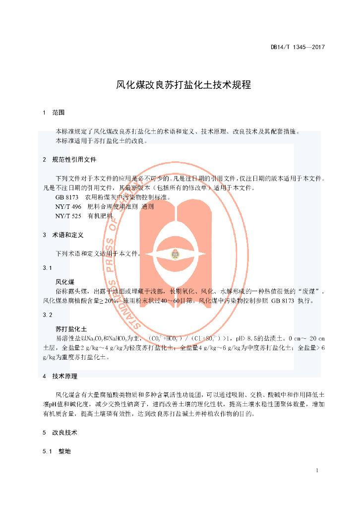 DB14/T 1345-2017 风化煤改良苏打盐化土技术规程