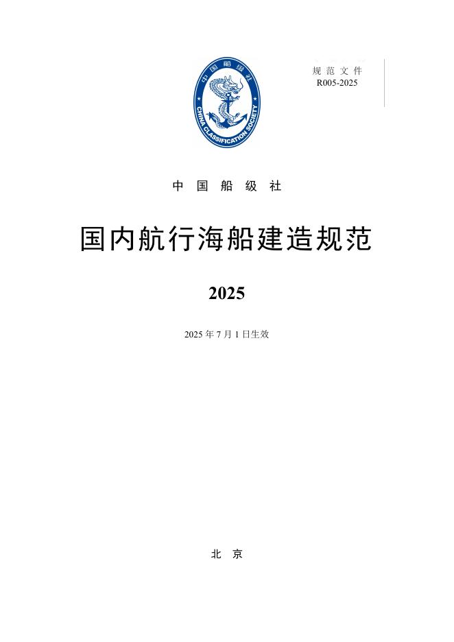 中国船级社(CCS):国内航行海船建造规范2025
