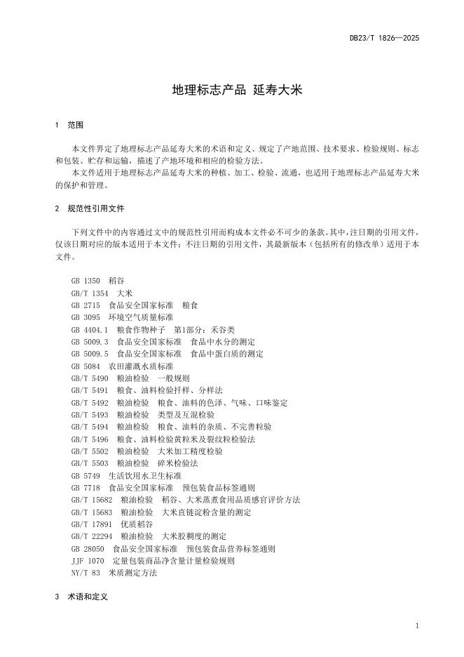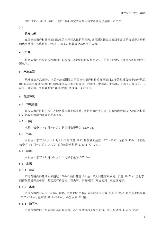 DB23/T 1826-2025 地理标志产品 延寿大米