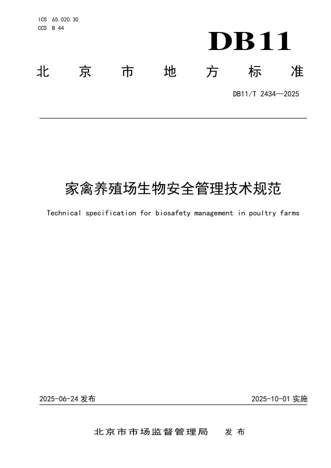 DB11/T 2434-2025 家禽养殖场生物安全管理技术规范