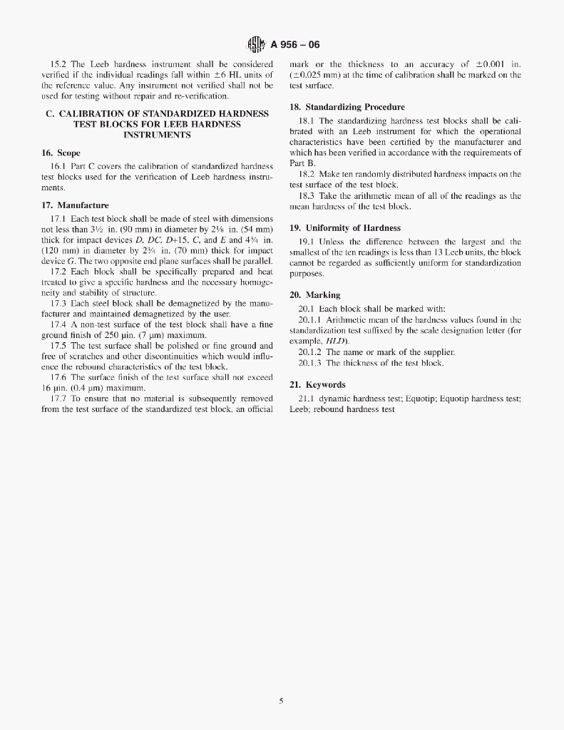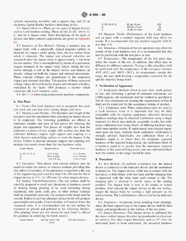 A956-06 Standard Test Method for Leeb Hardness Testing of Steel Products