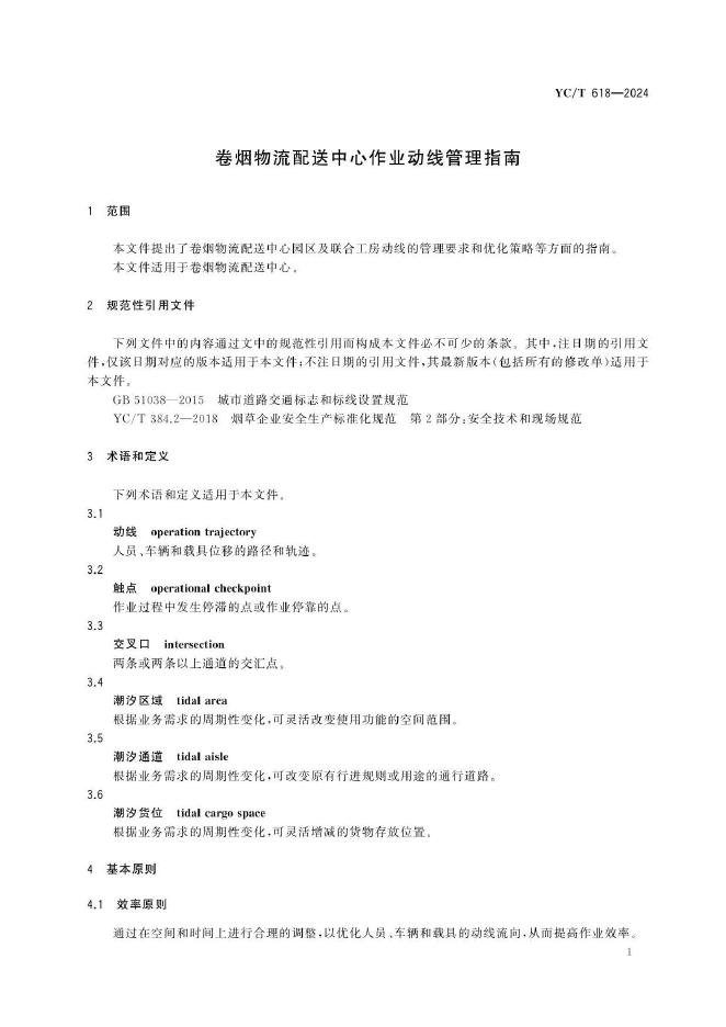 YC/T 618-2024 卷烟物流配送中心作业动线管理指南