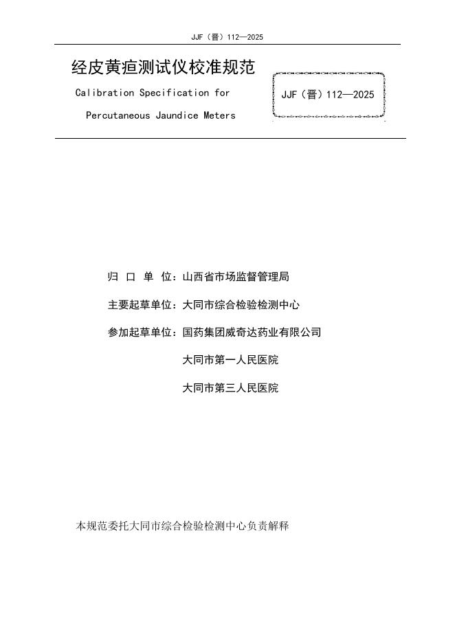 JJF(晋)112-2025 经皮黄疸测试仪校准规范