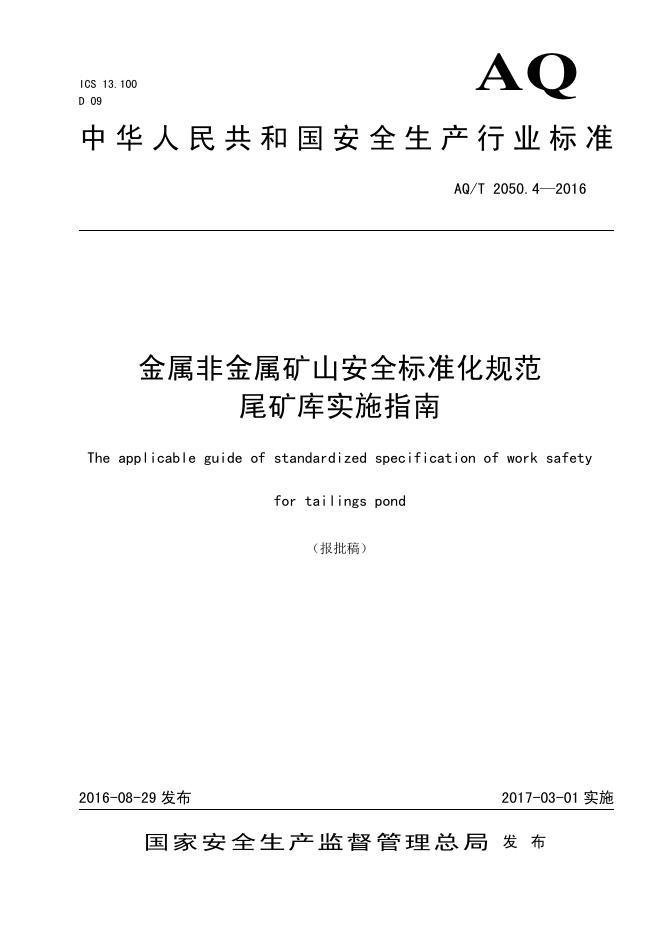 AQ/T 2050.4-2016 金属非金属矿山安全标准化规范 尾矿库实施指南