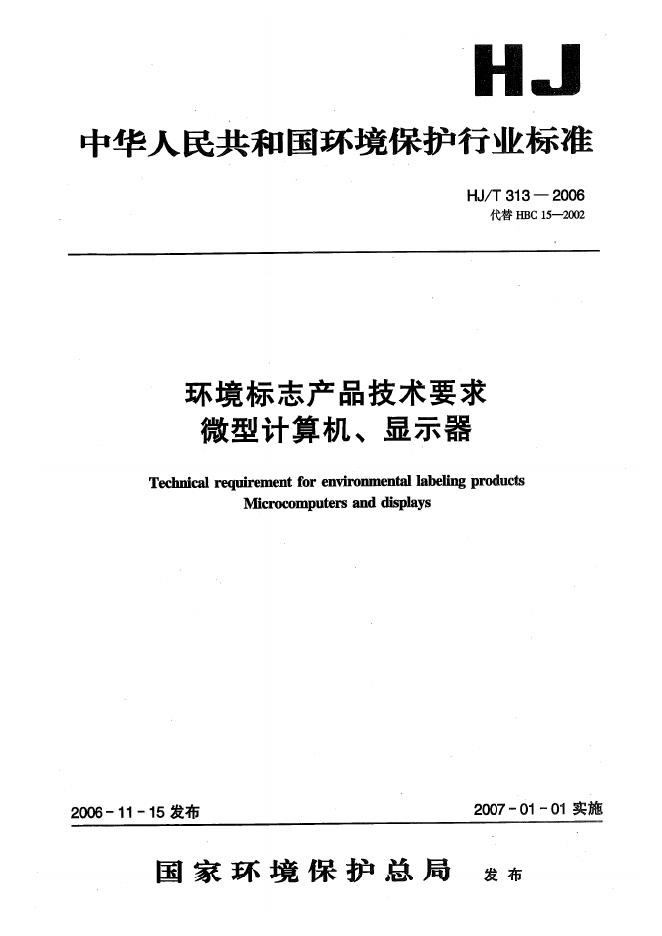 HJ/T 313-2006 环境标志产品技术要求 微型机算计、显示器