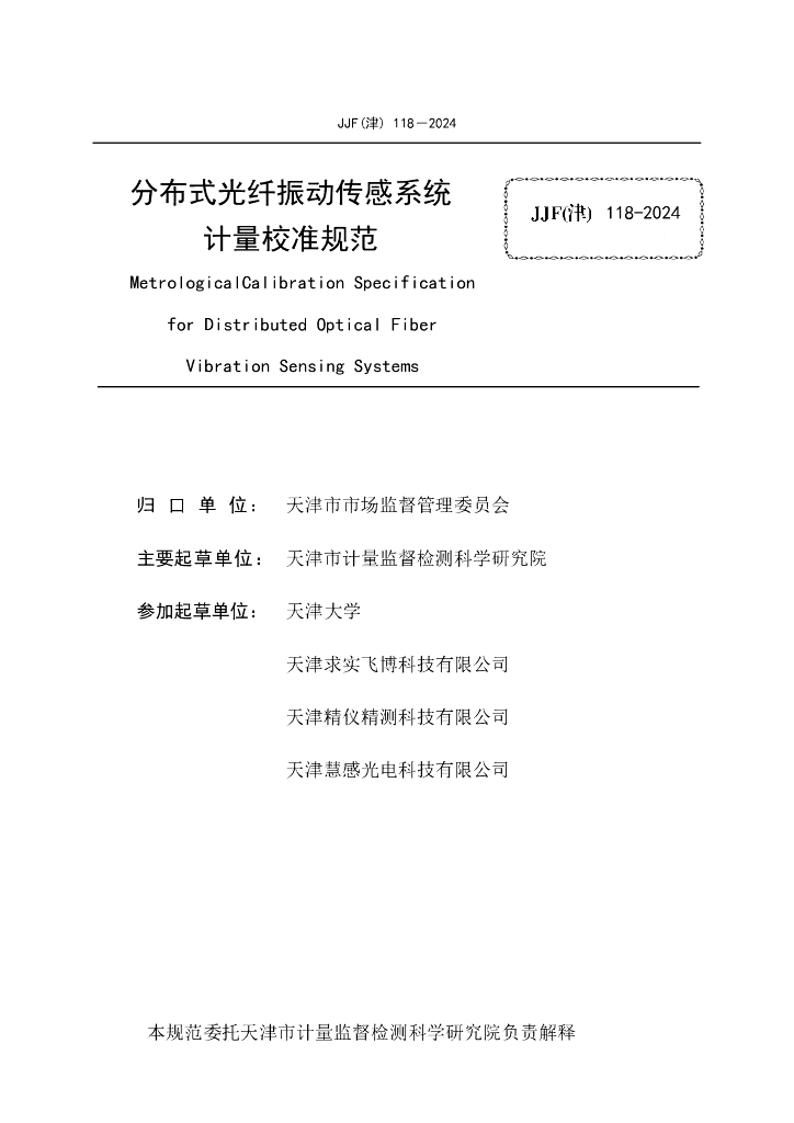 JJF(津)118-2024 分布式光纤振动传感系统计量校准规范