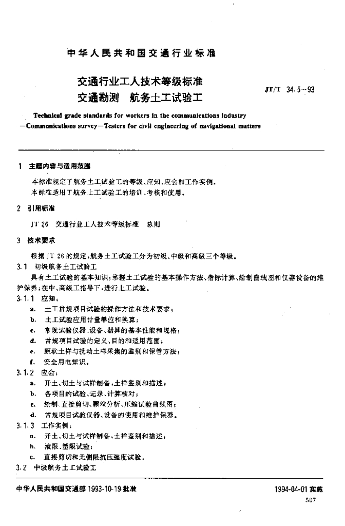 JT/T 34.5-1993 交通行业工人技术等级标准交通勘测航务土工试验工