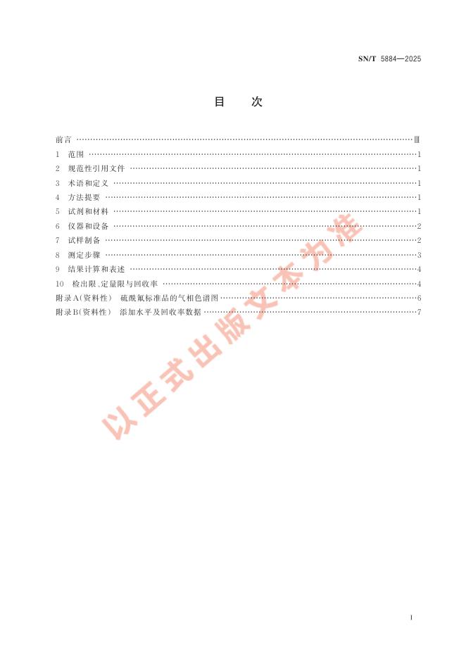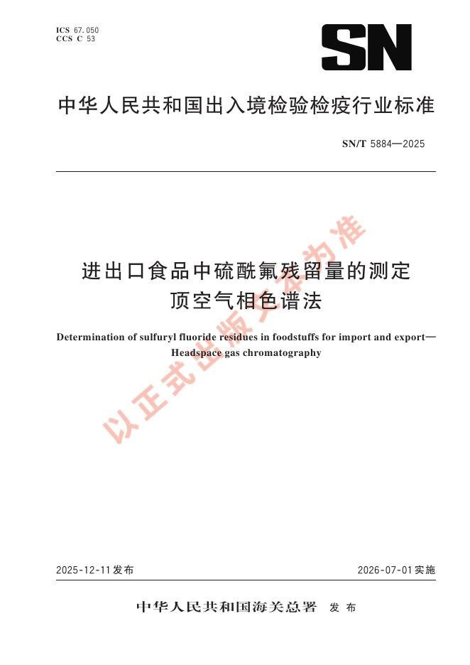 SN/T 5884-2025 进出口食品中硫酰氟残留量的测定 顶空气相色谱法