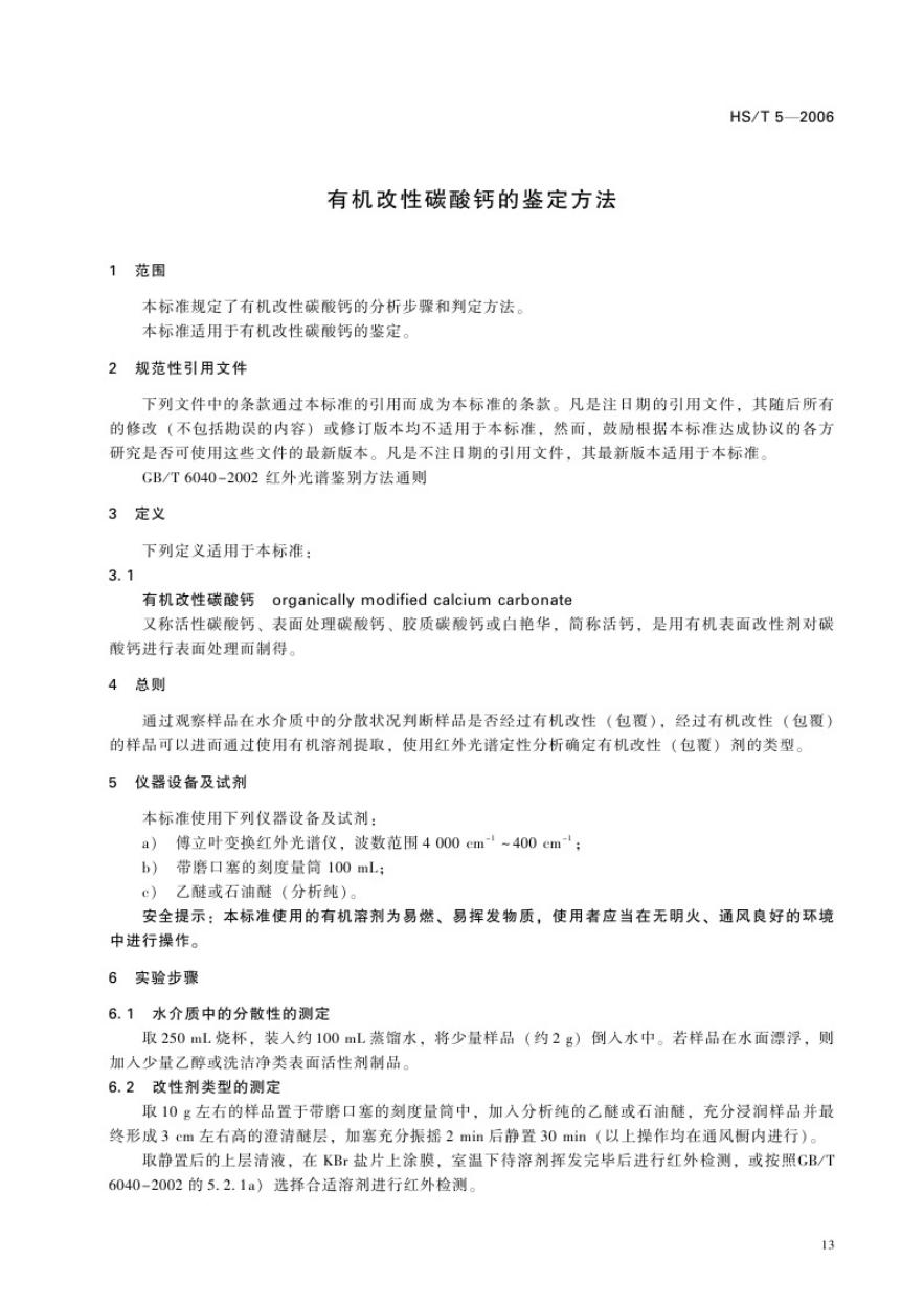 HS/T 5-2006 有机改性碳酸钙的鉴定方法