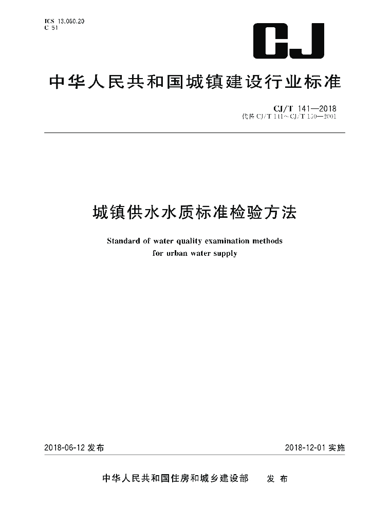 CJ/T 141-2018 城镇供水水质标准检验方法
