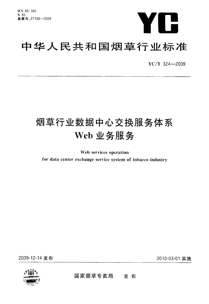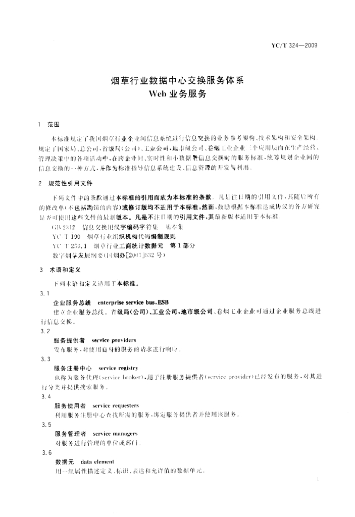 YC/T 324-2009 烟草行业数据中心交换服务体系Web业务服务
