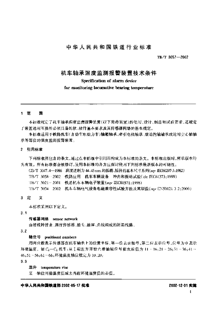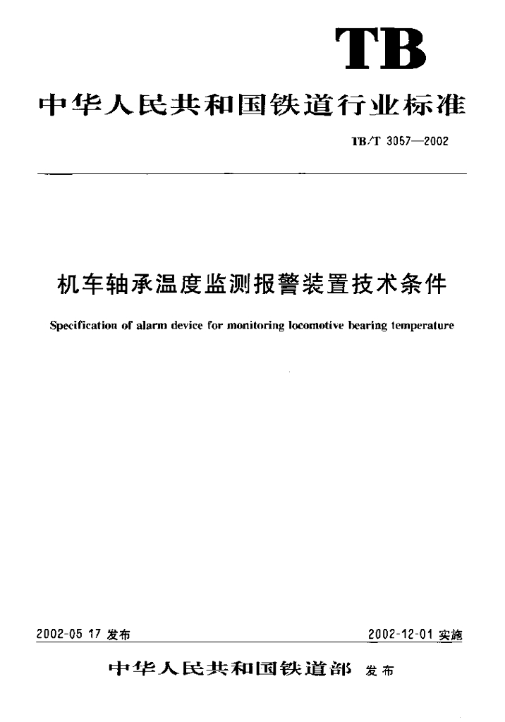 TB/T 3057-2002 机车轴承温度监测报警装置技术条件