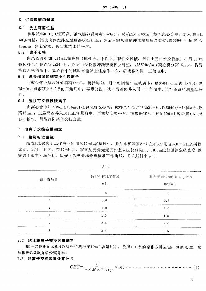 SY 5395-1991 粘土阳离子交换容量及盐基分量测定方法