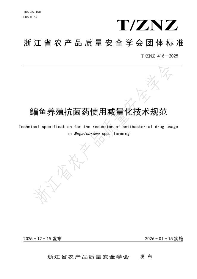 T/ZNZ 416-2025 鳊鱼养殖抗菌药使用减量化技术规范